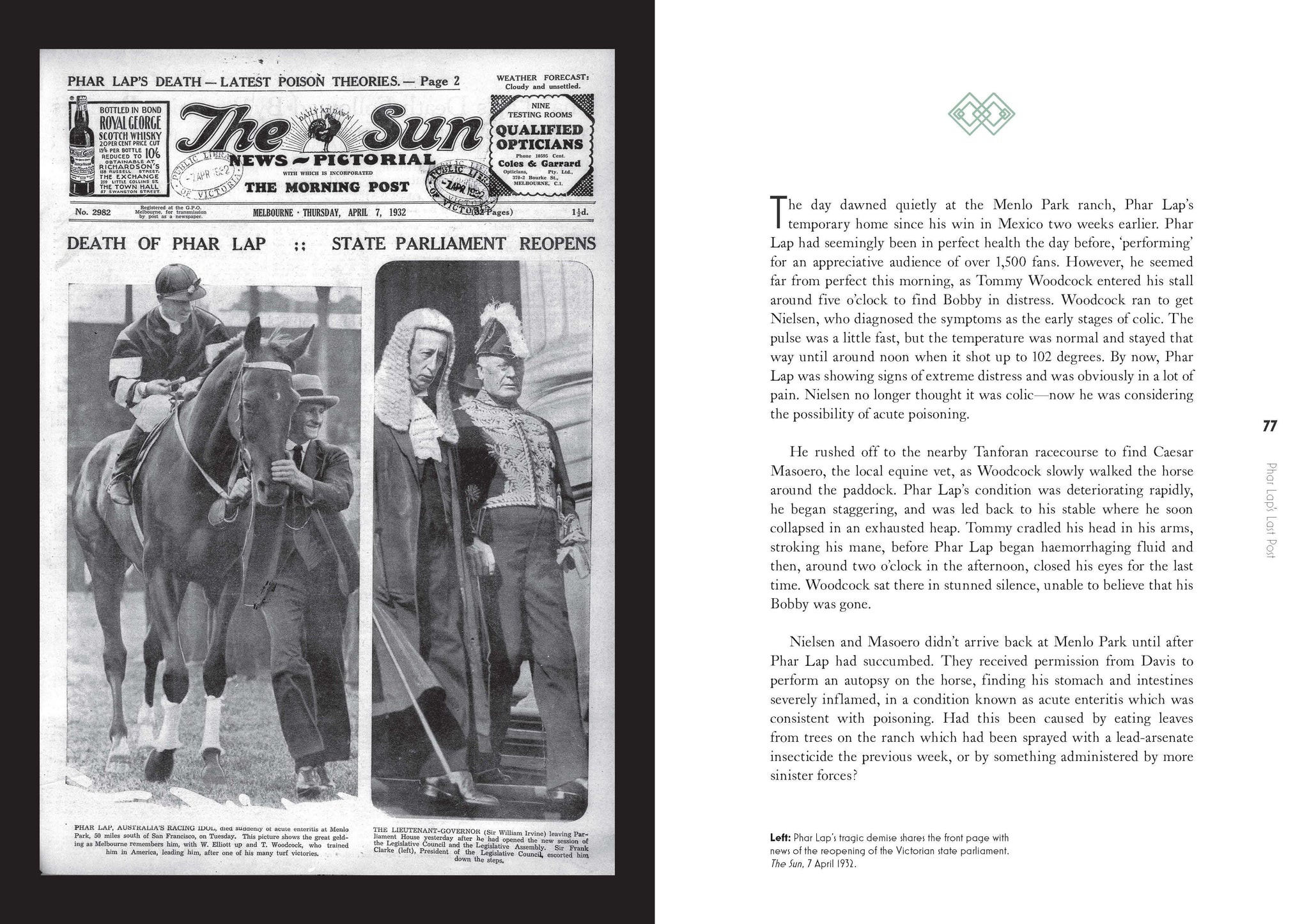 Today, Phar Lap continues to attract new generations of visitors to his home at Melbourne Museum. This anniversary edition of Phar Lap: A True Legend marks the occasion of Big Red’s 100th birthday, bringing together memorabilia, letters and a wealth of photographs to celebrate this great horse.
