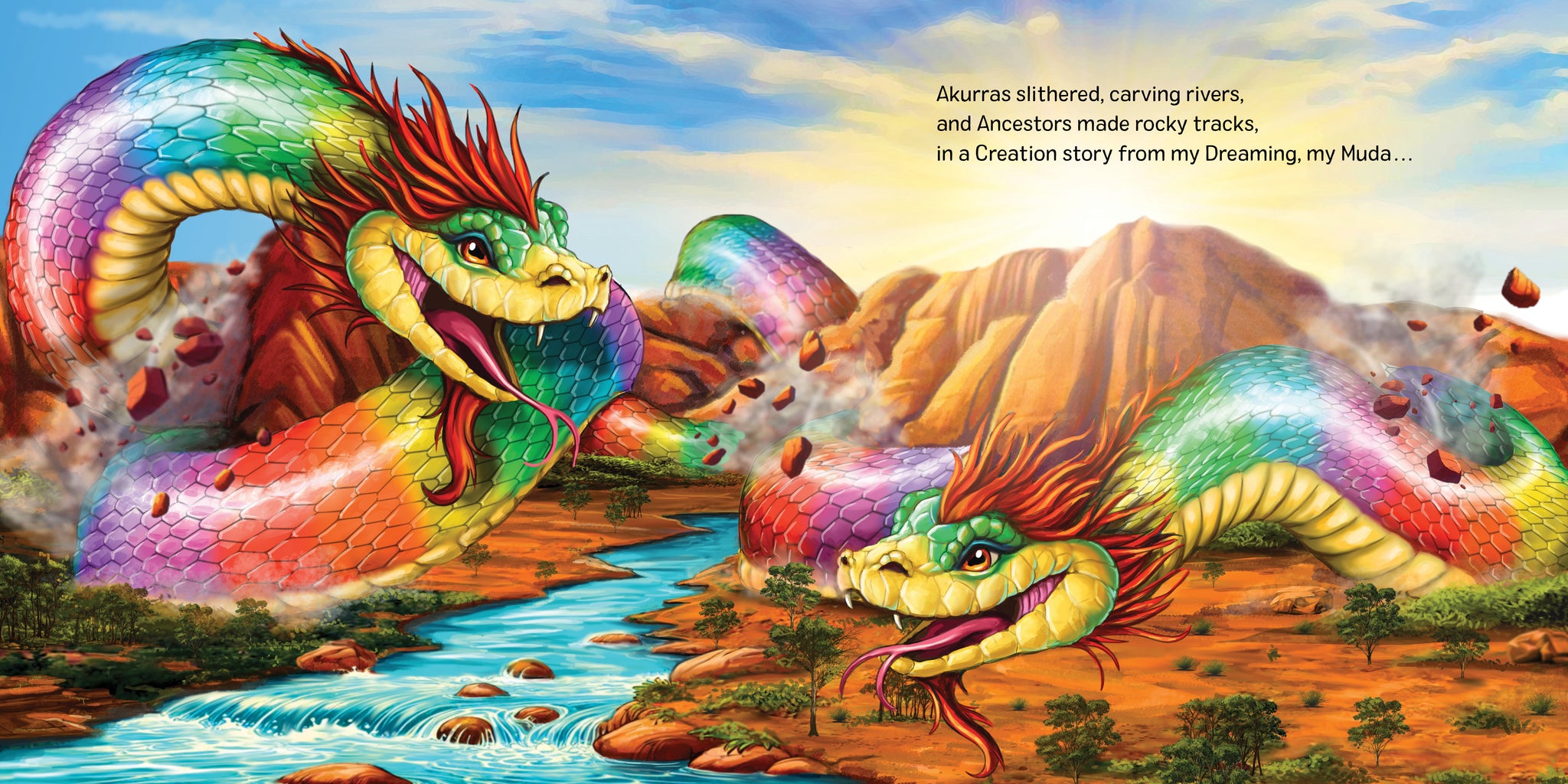 Way way back in the beginning, Akurras slithered, carving rivers, in a Creation story from my Dreaming, my Muda.