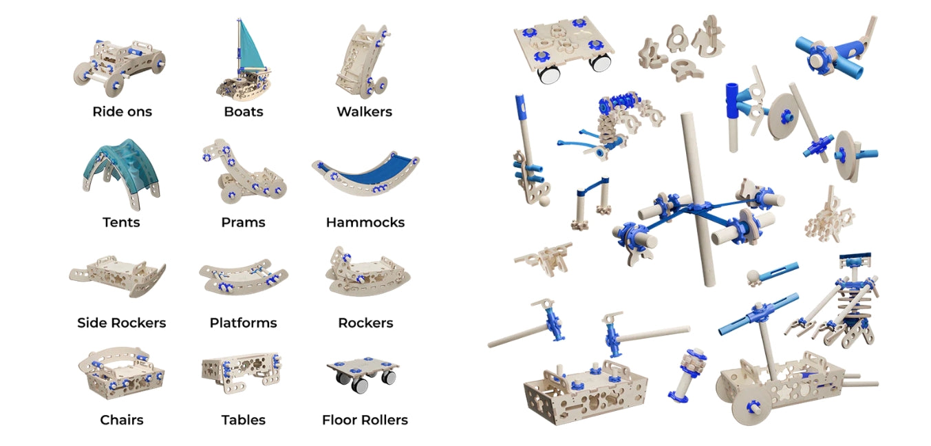 Let your child be the toy maker, not the toy user. The pod creates a space where children set the path and the goal grows and develops in complexity over time for years and years.