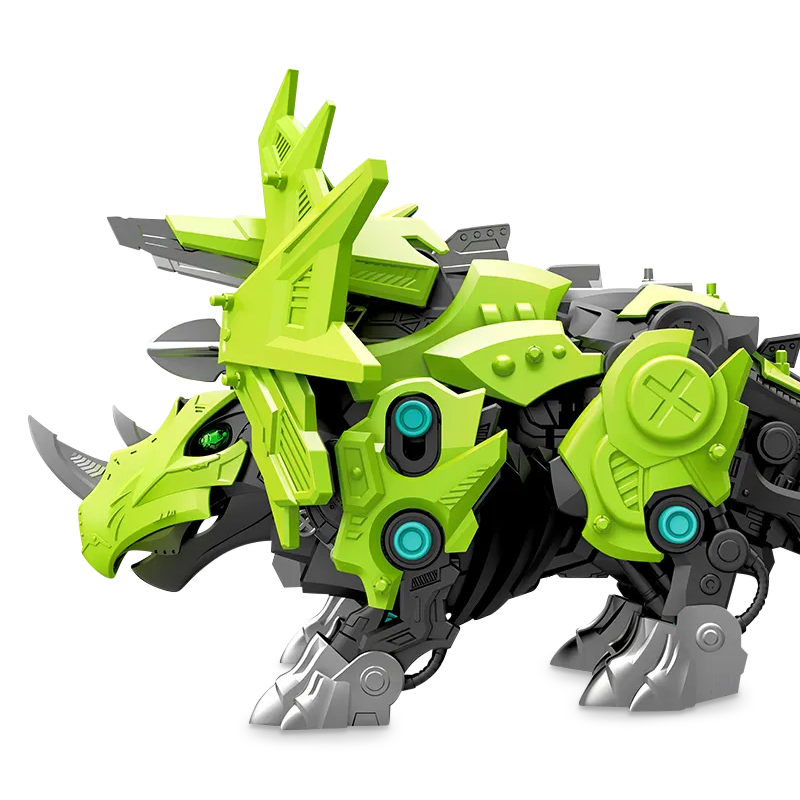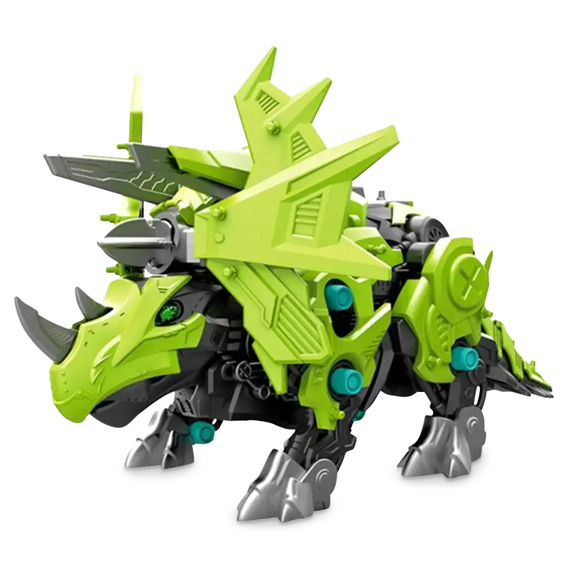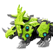 Have some fierce fun with this do-it-yourself, multifunctional armoured dinosaur robot. Build your very own armoured dinosaur ready for battle. Watch Triceratops' neck shield swing whilst walking along - then he stops and changes to attack mode.